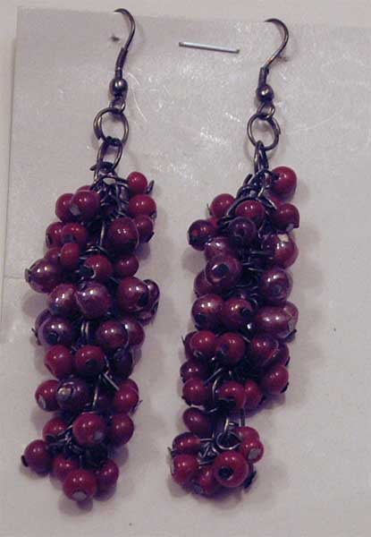 dark red glass beads on dark metal
